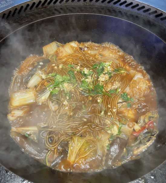 当然,你也可以烤酸菜、口蘑、豆皮等等,但都得在吃完肉之后进行,肉就得纯粹的吃。 最后再用 大冷面 收尾,超满足。