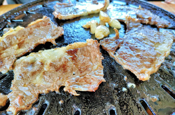 大片肉 是肉眼可见的新鲜,放到烤盘里瞬间滋啦作响,瘦肉 肉嫩 汁足。肥的部分也没有牛膻味,只留下满嘴肉香。