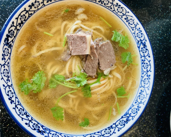 汤是 纯牛骨熬制 而成,上面漂浮着一层香浓的牛油,吃起来满口香,纯手工做的面Q弹劲道。