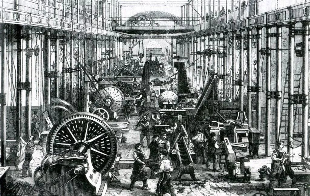 同时,也只有通过对海外资源和市场份额的激烈竞争,才如此需要建设一支拥有强大火力的远洋海军,并通过规模化大生产方式来提高各种产品的生产速度和降低生产成本,压低销售价格,从而导致了以劳动分工为基础的流水线工厂体制(包括大型兵工厂)和珍妮纺织机与蒸汽机的诞生和普及。