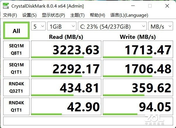 我们手上的机器搭载了一块256GB NVMe PCIe3.0固态硬盘,来自KIOXIA铠侠,OEM型号,最大读取速度3223.63MB/s,最大写入速度1713.47MB/s,SSD Benchmark得分3635,属于目前PCIe 3.0固态硬盘中的高端水平。