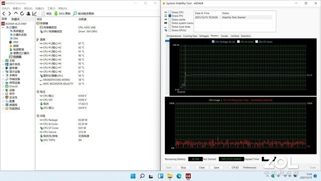 接下来的烤机环节进一步证明了这一点,在AIDA64 30分钟FPU模式下,这款机器的处理器从开始到结束,稳稳保持着高达65W的性能释放,频率保持在3.3Ghz左右,全程一条直线,没有一点大的波动,温度控制在了90度上下。可见,惠普对于这款处理器的调校十分到位,既让它火力全开,同时也控制住了发热。