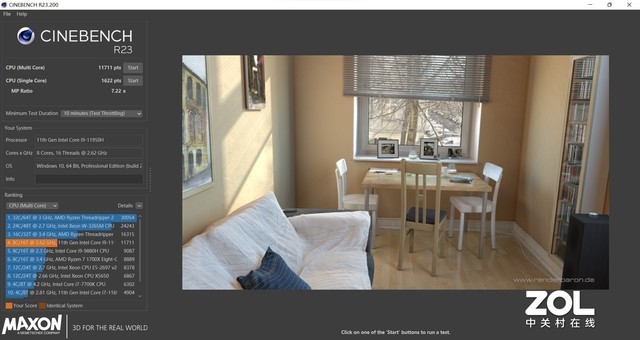 在CINEBENCH R23中,单核性能1622分,多核性能11711分