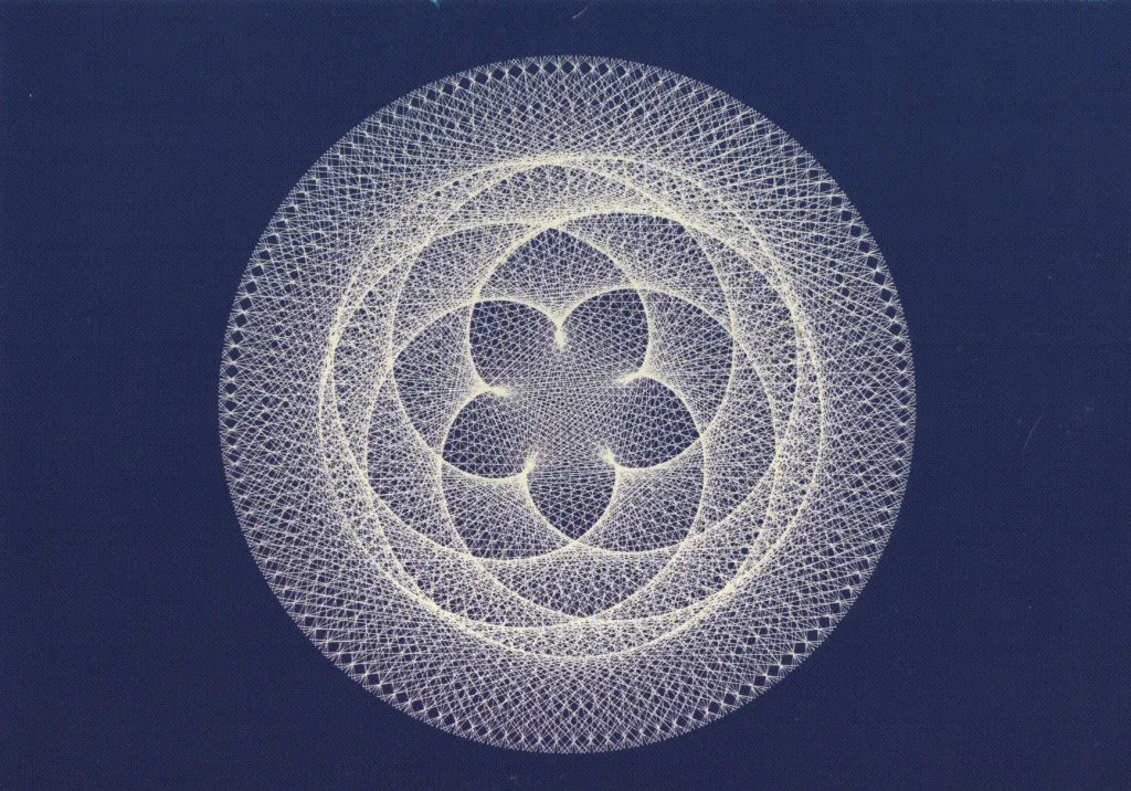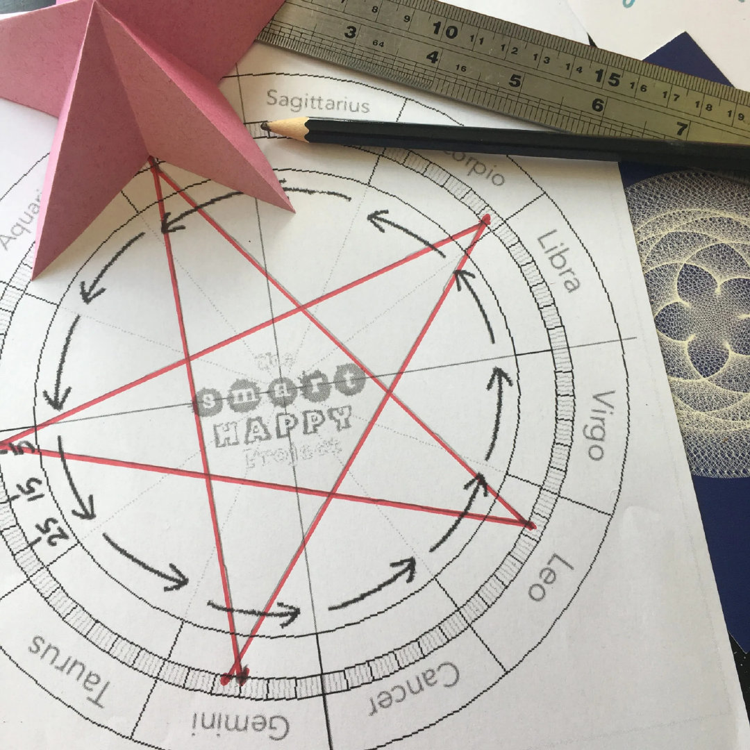 如果你从每一个环到下一个环,你会发现它们不是彼此相邻的,而是距离的2/5,就像是五角星的5个点。