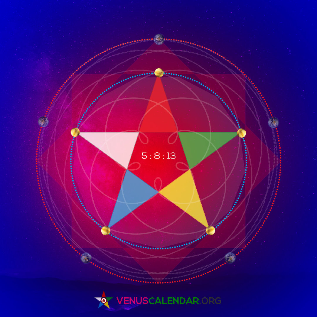 之所以使用五角星这个词——或者说五边形,是因为在八年中,每种现象——地球、金星和太阳的每个相对位置,都发生了五次。然后,在接下来的八年里,它们再几乎以相同的方式重复五次。