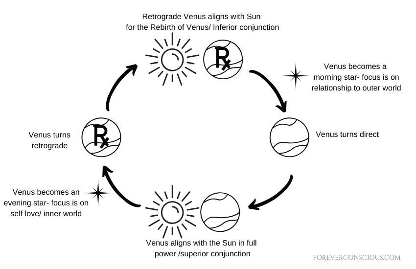 金星的五个内合点因为金星在以太阳为中心的真轨道上的位置不同,而具有了不同的特点。金星的真轨道是倾斜的,略微呈椭圆形。