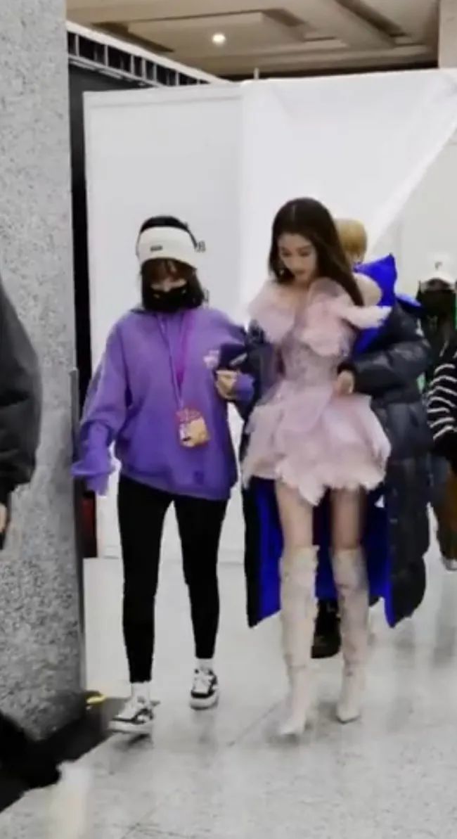 关晓彤也录制了北京台的春晚,但目前还没有那么高清的路透图。从饭拍的图中可以看到,关晓彤也穿了一条粉色的裙子,裙子上还有很多绒毛,这是把冬夏结合起来了呀!