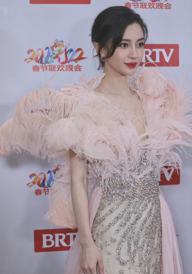 baby穿着一身粉色的包臀紧身裙,上半身是粉色的羽毛,下半身是一条条的亮片。看着青春靓丽,艳美大方。果然baby不止美在红毯,有她穿礼服的地方,她永远很美。