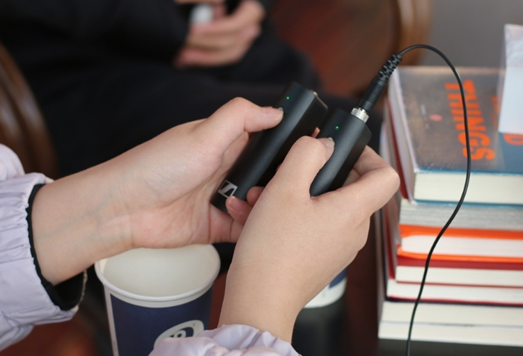 森海塞尔XSW-D小蜜蜂话筒很小巧,藏起来特方便的领夹式,非常适合直播访谈。设备没电时还可以外接充电宝使用,哪怕长时间采访也不在话下。