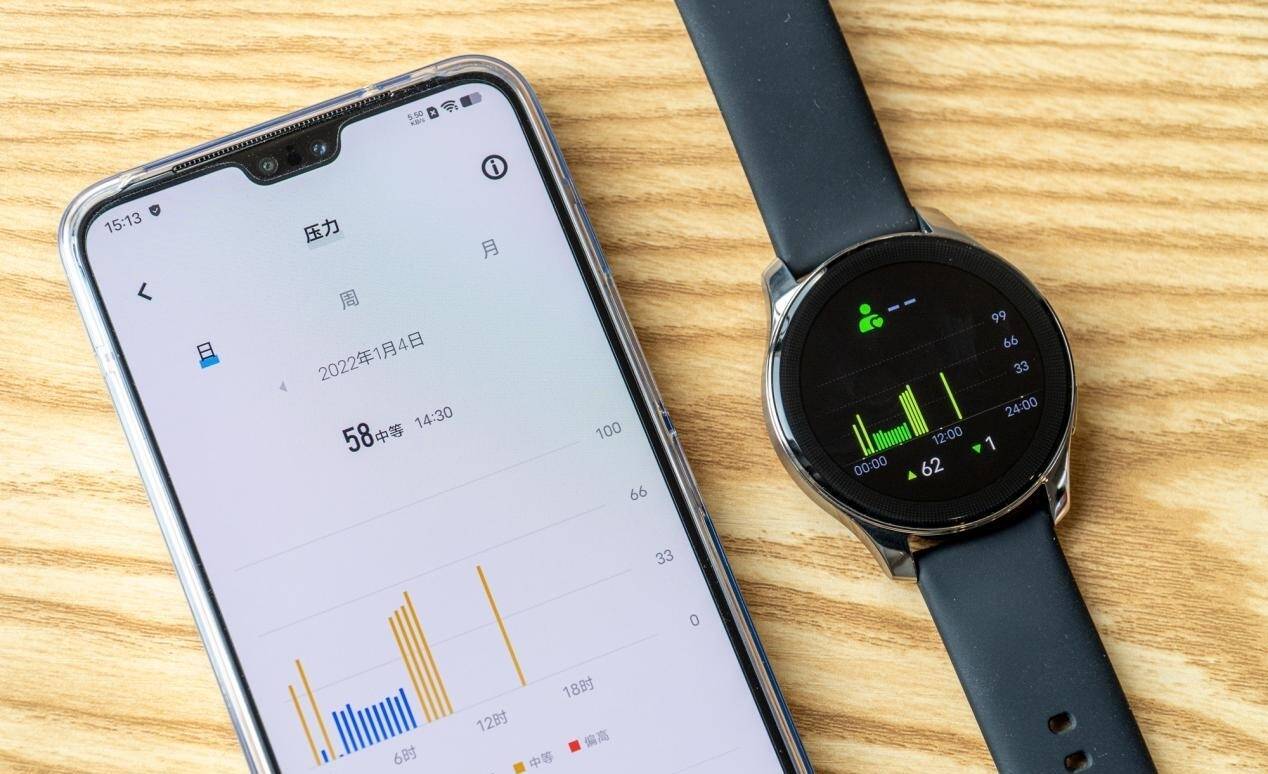 像是基础的心率检测、血氧检测、压力检测,vivo WATCH 2都能给到相对准确快速的检测过程与结果,同时与手机端进行互联互通,将数据以图表的形式更加直观的向用户展示出来,还可以结合多种数据来对身体的压力、活力程度进行判断,对身体的实际情况可以有一个辅助了解。