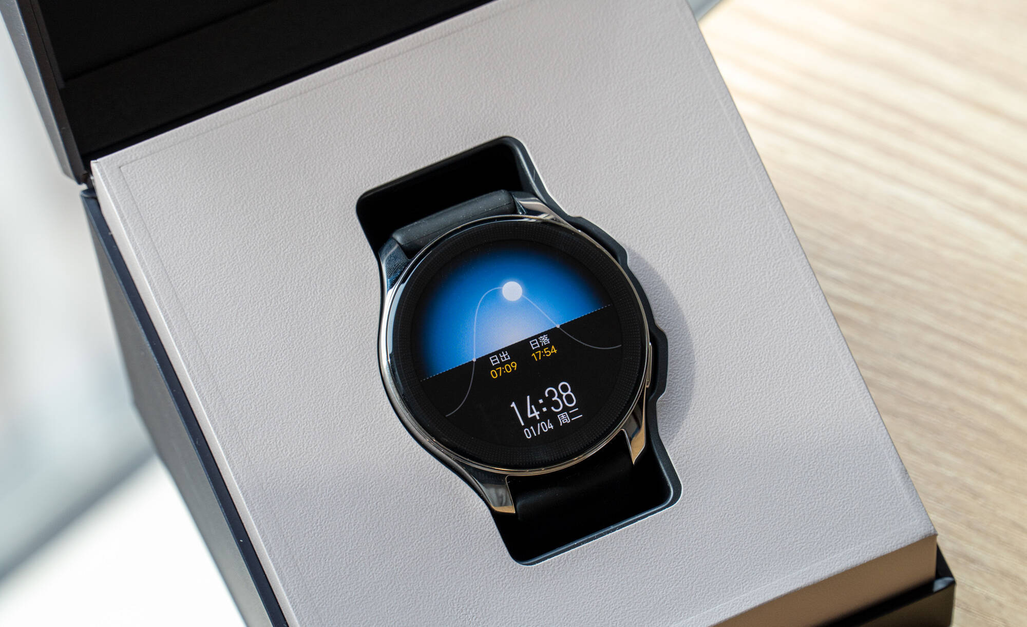vivo WATCH 2在包装上采用了“首饰盒”式的两段式设计,更加像是一些高端的装饰腕表的包装感觉。开盒后就可以看见手表以倾斜的角度展示在面前,仪式感满满。