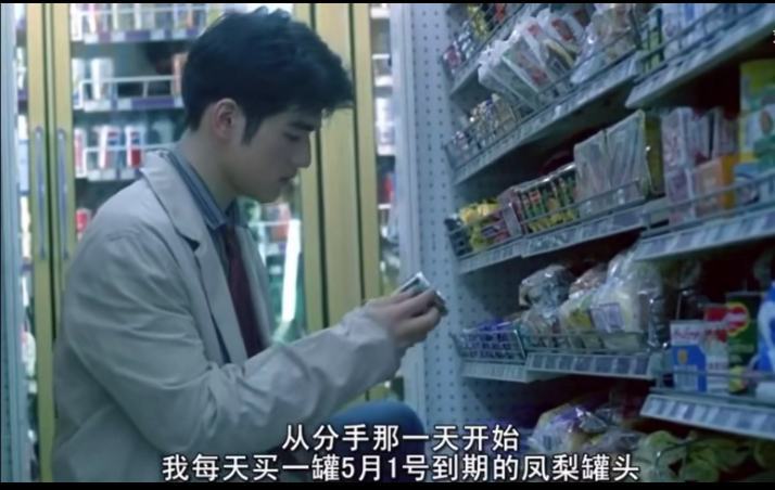 在电影《重庆森林》中,金城武在寻找一罐快过期的凤梨罐头。/图片来源《重庆森林》