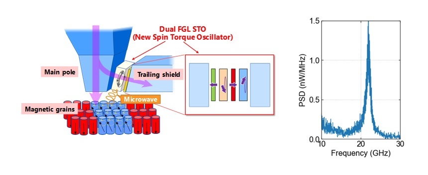 东芝表示,其开发了一种名为“双振荡型自旋扭矩振荡器装置(dual FGL STO)”,通过两层场产生层来照射微波。这种方式能有效地产生微波,电流较小,而且是在重点位置,当结合到磁头后,可以提高MAS-MAMR技术的记录性能。东芝通过演示采用新技术的设备,证明了MAS-MAMR技术的可行性,可以显著提高记录的密度,为下一代磁记录技术的应用迈进了一大步。