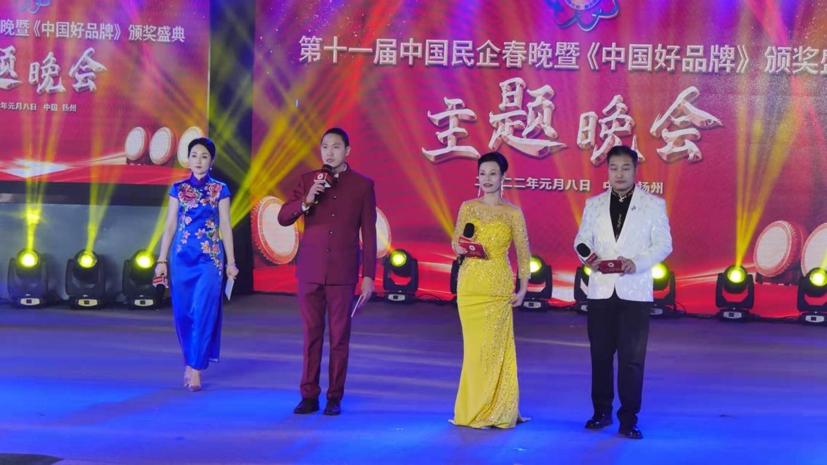 2022年1月8日一台以宣传“善念与大爱、奋进新时代!”为主题的第11届中国民企春晚暨《中国好品牌》颁奖盛典晚会活动在扬州圆满谢幕,由于受疫情的影响,本届中国民企春晚暨《中国好品牌》颁奖盛典活动采用线上线下、一个主体会场与多个分会场同期录制的特别形式进行。