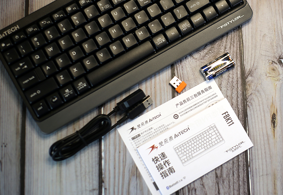 在无线连接的方式上,双飞燕FBK11键盘支持2.4G和蓝牙两种模式。2.4G模式直接在电脑或者平板的USB插口上插入无线接收器即可,无需复杂设置就能即插即用。而蓝牙模式下可以分别和3台不同的设备进行蓝牙配对连接,通过键盘实现无缝切换,操作多个设备。