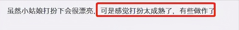 有网友认为小姑娘打扮下的确会很漂亮,但是打扮太过成熟,就会给人做作的感觉↓