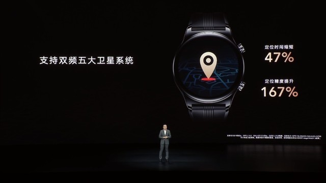 荣耀手表GS 3搭载了双频五大卫星系统,定位时间缩短47%,定位精度提升167%。其还支持100+运动模式,并自动识别其中6种。