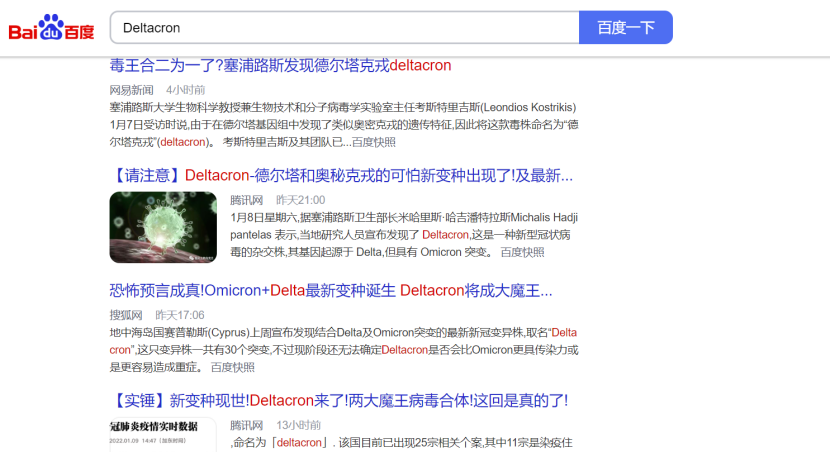 近日,Omicron变种在全球多国蔓延,导致全球每日新增感染病例屡屡突破百万大关。在这样的情况下,多国媒体接连爆出专家发现新变种“IHU”、“Flurona”、“Delmicron”和”Deltacron”的新闻,在网上引发热议和恐慌。