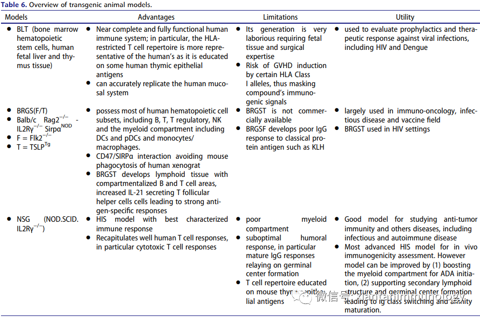 目前,最好的模型是人源化小鼠(即Human Immune System,“HIS”),通过对免疫缺陷小鼠进行骨髓消融,并用从胎儿肝脏或从脐带血(更常见)中获得的人类造血干细胞重建而产生。到目前为止,因为成本高、时间周期长,人源化小鼠还没成为临床前免疫原性风险评估的首选平台,集中在具有高免疫原性风险的生物疗法的研究/评估上。