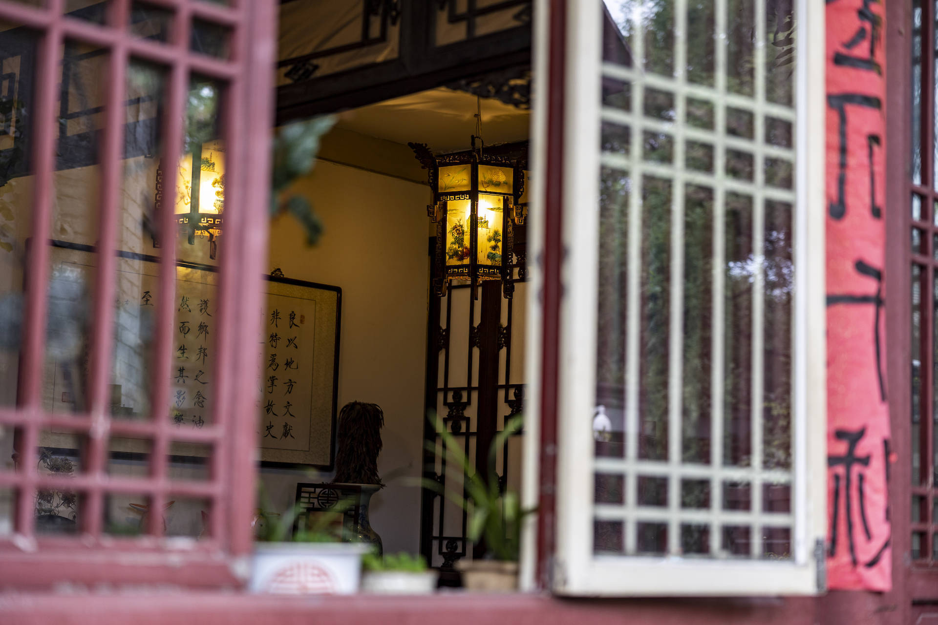 古塔为小院平添了几分古色古香的气质,正阳书局的店面就分散在小院的几间屋子里,甚至在院子里的丝瓜架下,也立了一排书架,有书友正在架子下边喝饮品边看书,有几分书吧的意思。