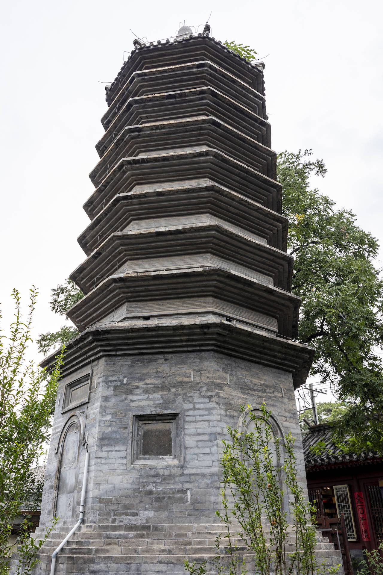 正阳书局的牌匾挂在一个爬满爬山虎的老门框上,看起来古色古香,进了院子,抬眼就是有700多年历史的万松老人塔——这座16米高的八角九级密檐式建于元代,比故宫的历史还要早,是为纪念元朝高僧万松老人所建。