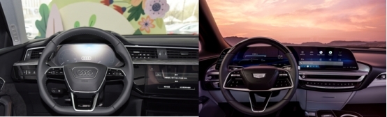 驾驶凯迪拉克LYRIQ出行,坐在高科技的座舱内,和家人感受智能科技带来的驾驶乐趣,可以使用这块33英寸的大屏给孩子播放动画片,让出行氛围更加融洽。与奥迪e-tron的环抱式座舱中的10.25英寸全液晶仪表盘+嵌入式11.6英寸中控液晶屏相比,虽然其在科技感的营造上还不错,但与凯迪拉克LYRIQ的33英寸超视网膜显示屏相比就差不少意思。