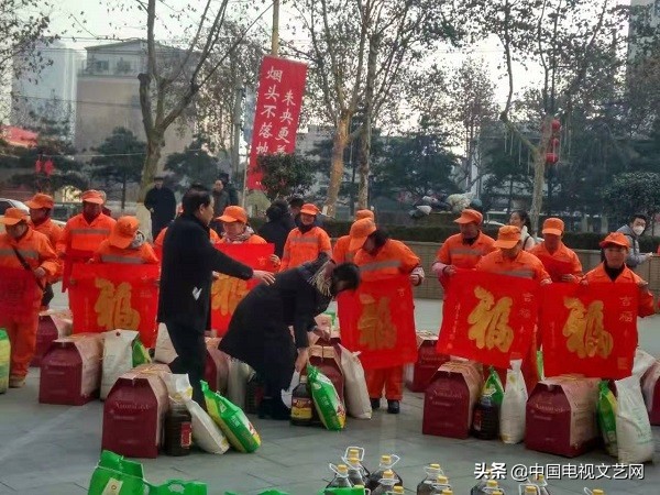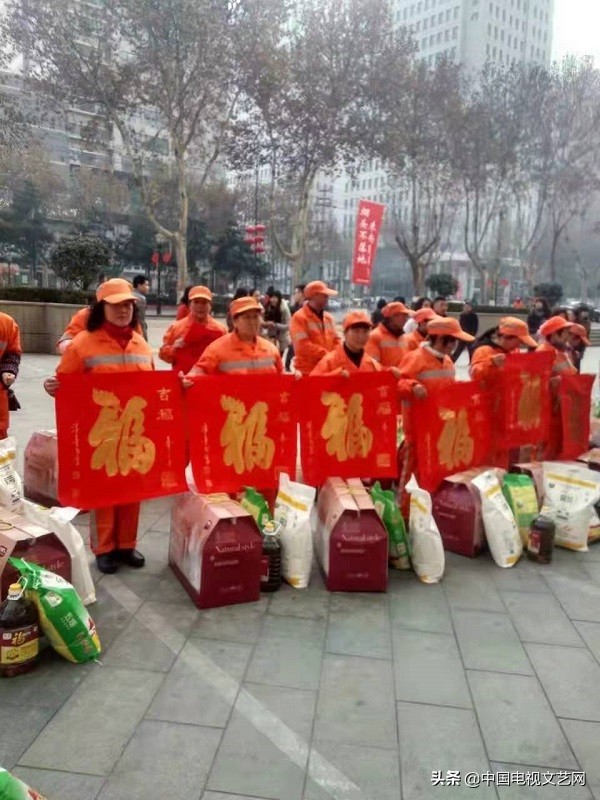 书法家现场挥毫泼墨书祝福,将一幅幅“福”字送给环卫工人。