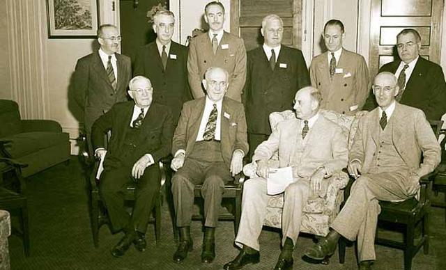 参加布雷顿森林会议的美国代表团成员,前排右二为摩根索,后排左一为怀特