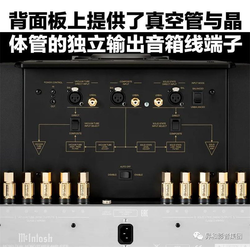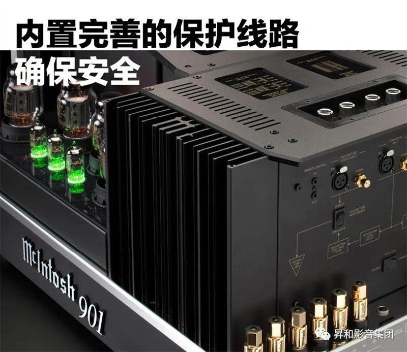 美国McIntosh麦景图的MC901是一款极具创造性的产品,在一个机箱内装了“两部”单声道后级功率放大器,一是用8支KT88输出300瓦的真空管后级;另一是由高电流三极管输出600瓦的晶体管后级。并且,内置二路电子分音模块和独立的音量可调功能,让MC901成为全球独一无二的胆石双单声道功放。