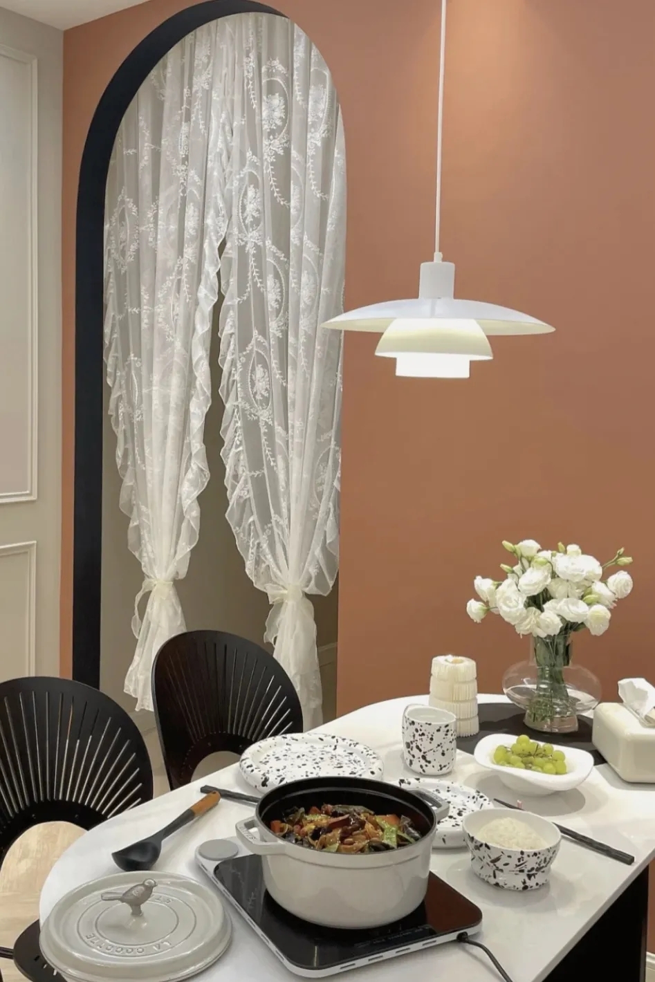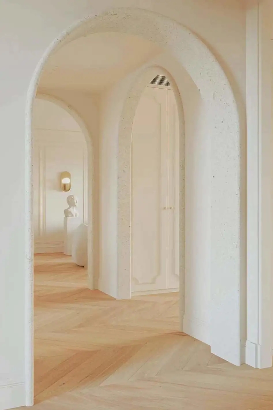 多个拱形叠加,可以提升整个空间的层次感。温润的奶油色和质感满满的拱门设计,把轻法式的风格拿捏住了。