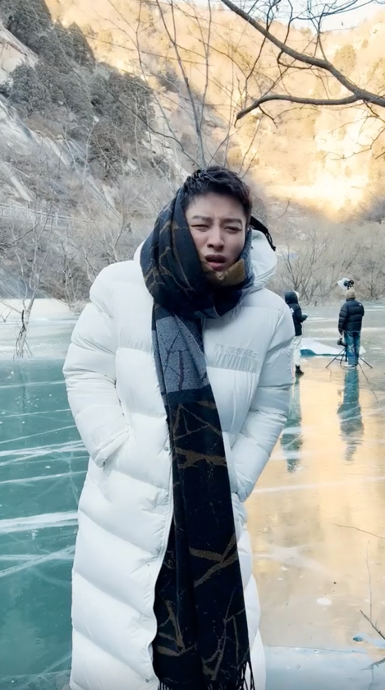 他再配上 “天冷风大听不清,想走却把腿摔青”,透露出自己摔的这一下把脚都摔青了,看样子贾乃亮这一跤摔得可不轻啊。