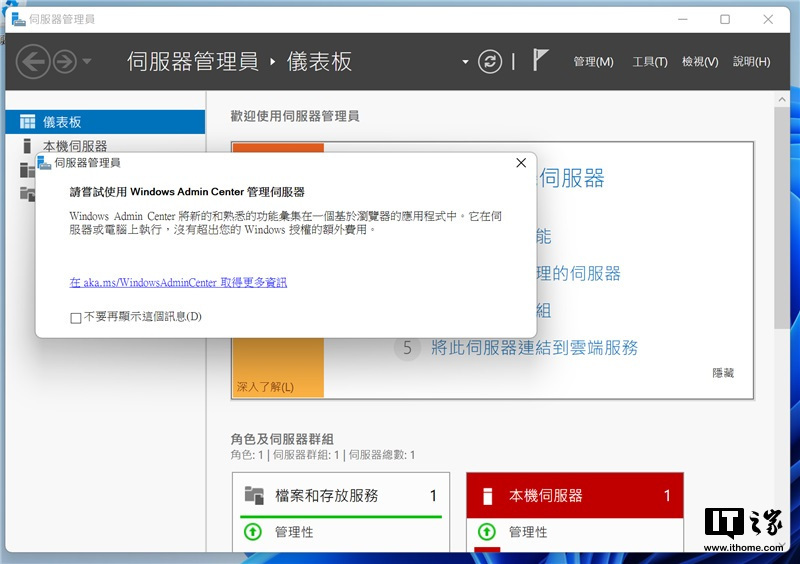 由于 Windows AdminCenter 的出现,微软推荐使用 Admin Center 而不是传统的服务器管理器。