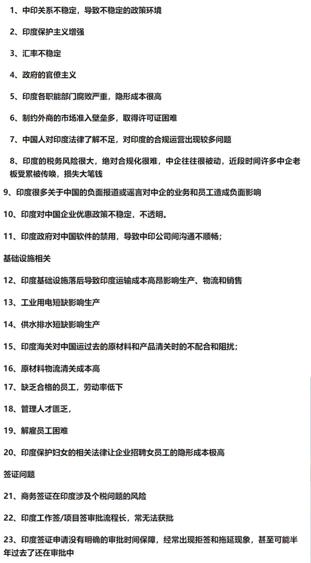 在印工作多年的中国企业人员总结印度营商投资常见问题,图源:印度笔记《印度营商环境之投资环境浅析》