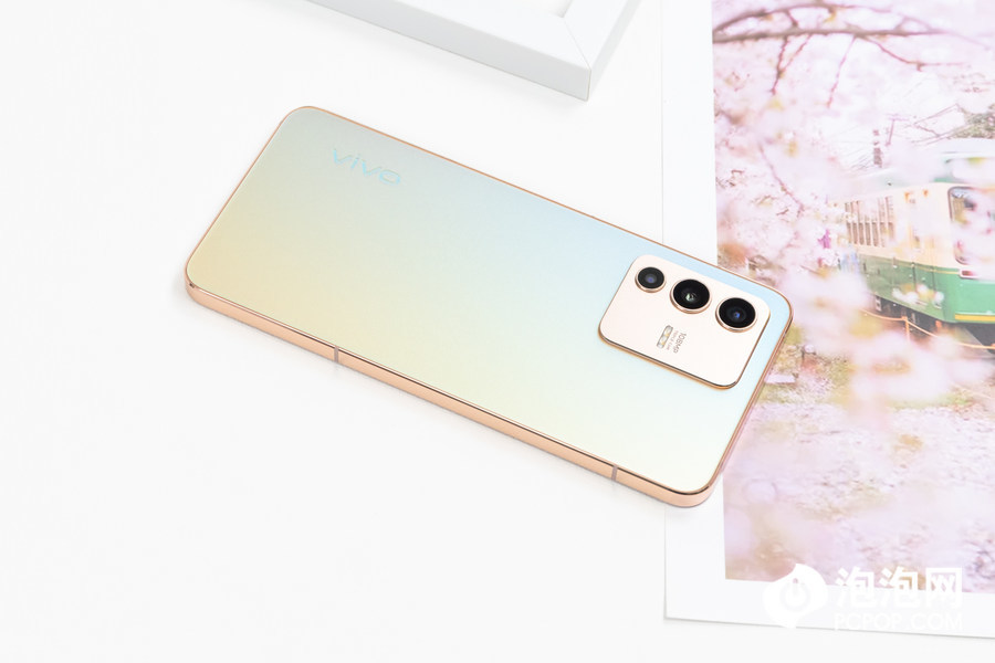 vivo S12提供暖金、耀黑和屿蓝三种配色可选。其中暖金配色十分特别,支持光致变色。这次采用的是光致变色2.0技术,在紫外线、蓝光吸收,变色阈值、变色速度等方面都有提升。