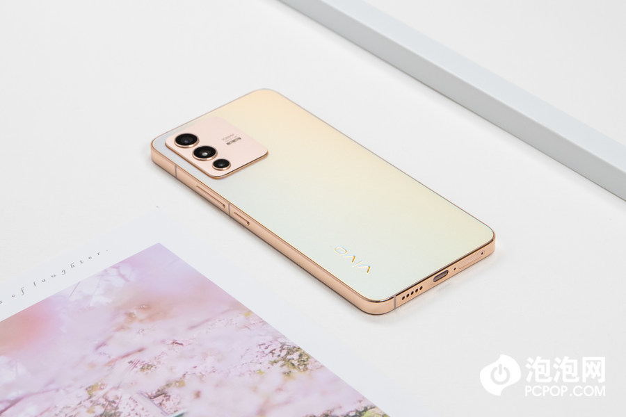机身采用了亮面直角中框设计,握持时会有棱角分明的感觉,中框边缘采用了倒角处理,降低硌手感。机身后盖为细腻的磨砂质感,触感舒适,也不易沾指纹。vivo S12还有轻薄机身优势,暖金配色机身厚度控制在7.55mm,机身重量约为181g,属于比较轻薄的,日常握持使用压力不大,其它两种配色会更加轻薄一些。