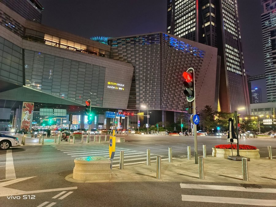 在夜拍方面,主摄在默认模式应该已经融入了部分算法,已经能很好压制高光、保留较为丰富的暗部细节,成像不用等太久,还可以开启夜景模式获得进一步提升。