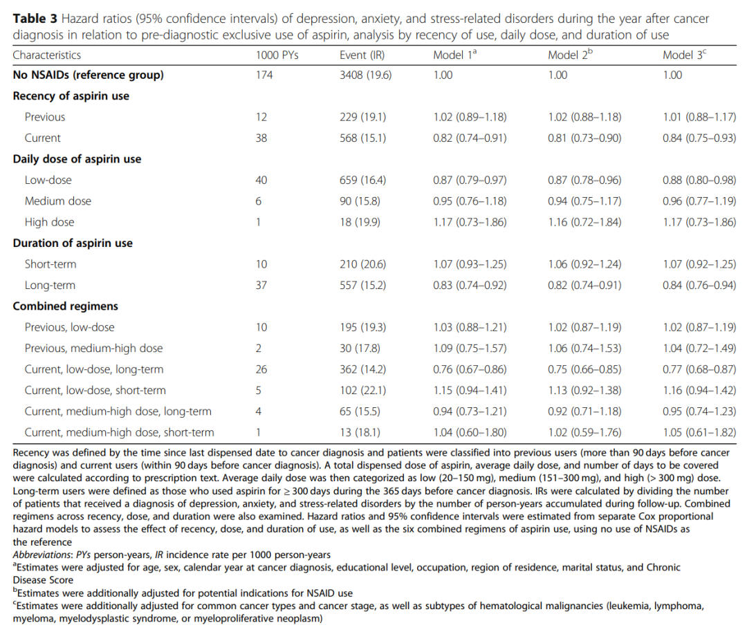 Kejia Hu et al,Aspirin and other non-steroidal anti-inflammatory drugs and depression, anxiety, and stress-related disorders following a cancer diagnosis: a nationwide register-based cohort study,BMC Medicine volume 18, Article number: 238 (2020)