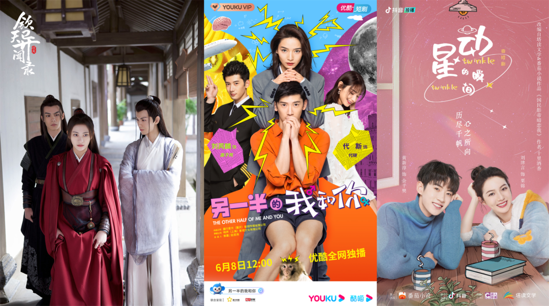 以嘉行传媒为例,其已接连与芒果TV合作《钦天异闻录》(播放量2亿)、与优酷合作《另一半的我和你》(刘芮麟、代斯主演,最高热度7228),与快手合作短剧《魔法口红》已于2022年初开机。