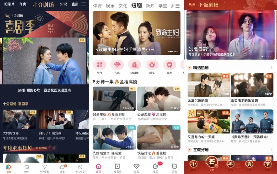 自左至右为,腾、优、芒短剧剧场