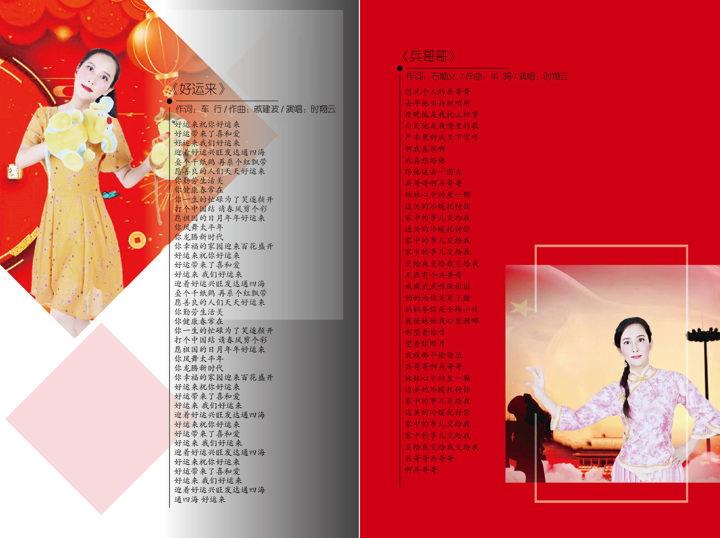 《好运来》这首歌曲风欢快大气、喜庆祥和、旋律优美,歌词更是琅琅上口、亲切而不失大气,时翔云的歌声大气磅礴,字里行间充满了真挚的祝愿和深切的人文关怀。“叠个千纸鹤再系个红飘带,愿善良的人们天天好运来,你勤劳生活美你健康春常在,你一生的忙碌为了笑逐颜开。”,对于大人们来说,好运就是身体健康,儿女幸福,对于小孩子们来说,好运就是收到满满的压岁钱。好运来”这三个字已经成为人们新春拜年最时兴的吉祥话儿,大家相信“好运来”的口彩儿能够真正给大家带来好运。而这首《好运来》就承载了更多的希望和祝愿,祝福祖国“好运来”,整首歌曲都透露着吉祥和谐的气息,共祝祖国繁荣昌盛。人美歌甜的时翔云用自己最深情、充沛的情感,抒发人们对生活的最好向往。