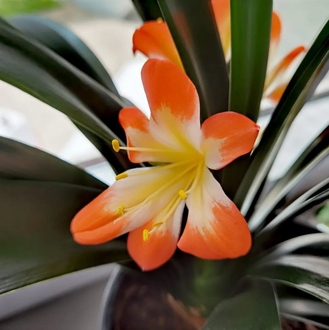 君子兰养在室内是可以做到每年开花的,每次开花都有1~2个月的观赏期,在半阴的朝东或朝南阳台都能将它养好,注意保证冬春时节有较多的阳光,它会更容易孕育花箭。高温的季节一定要避免强光照射,否则会灼伤叶子。
