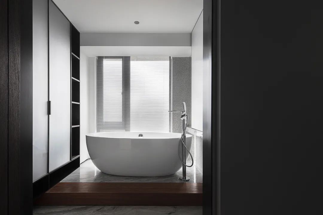 ▲主人设置了一个独立的衣帽间+浴缸区,主人闲暇之余可以躺在这里休闲放松。