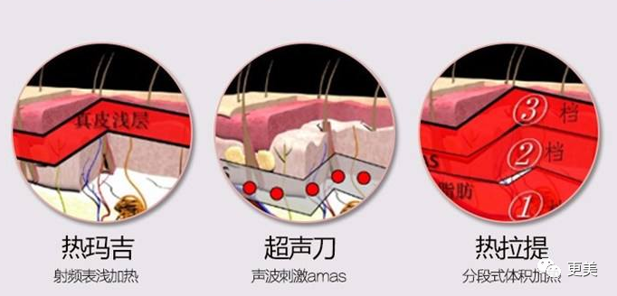 射频类项目(热玛吉、热拉提)是利用高频电磁波,加热刺激胶原蛋白增生,或者刺激我们的筋膜层紧缩以达到深层提升抗衰的目的。