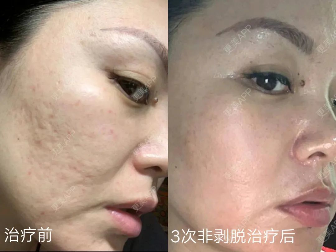 非剥脱的激光恢复快,基本上不会产生色沉,一般用于嫩肤、痘痕、去皱纹、收缩毛孔。