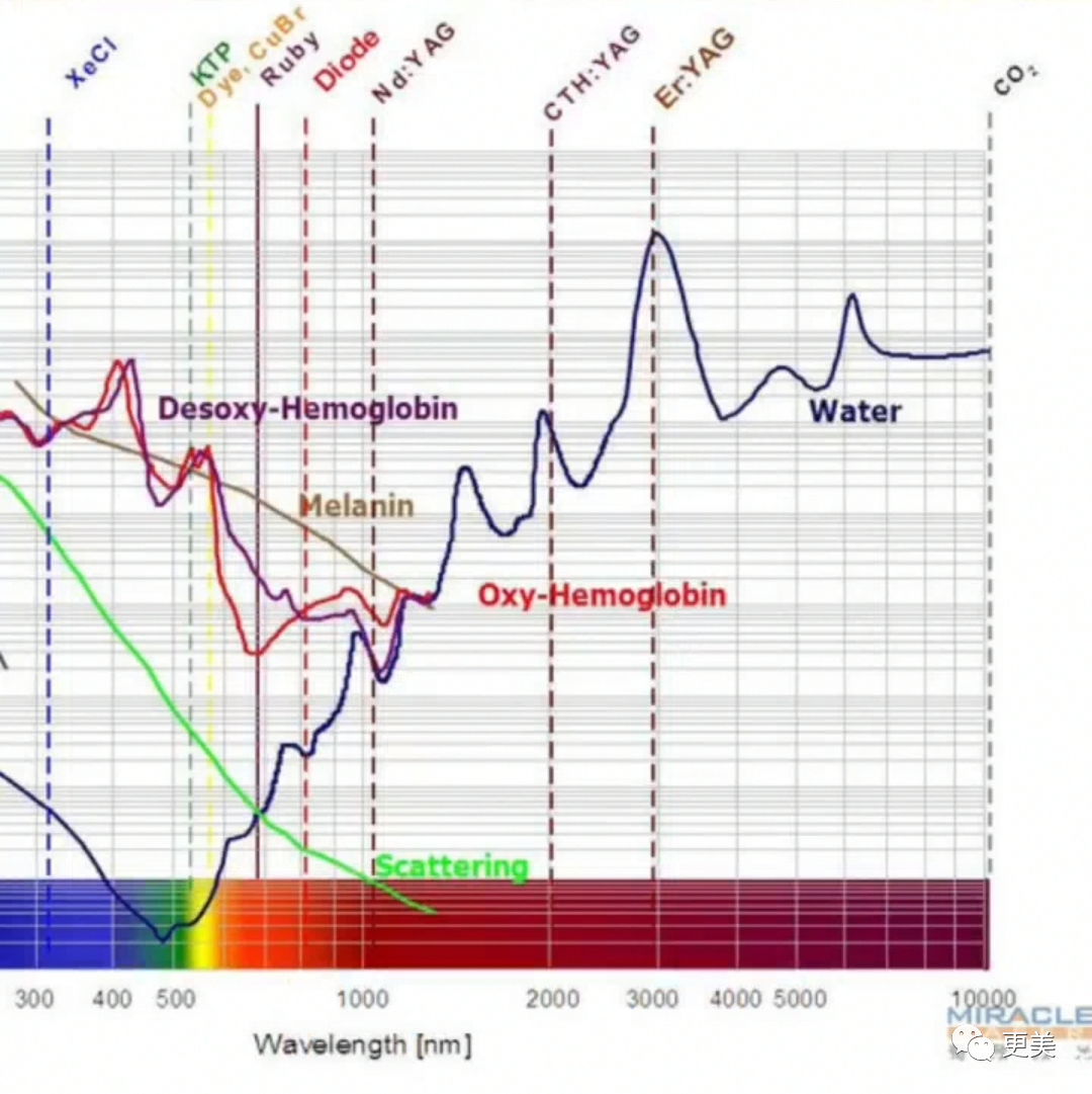 虽然分类五花八门,但是其原理基本是一致的:皮肤的特定组织吸收特定波长的激光之后会产生热能,从而能够对皮肤组织造成破坏。