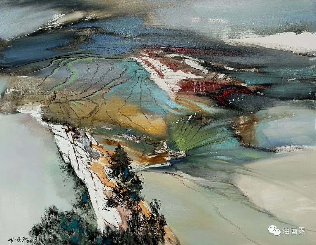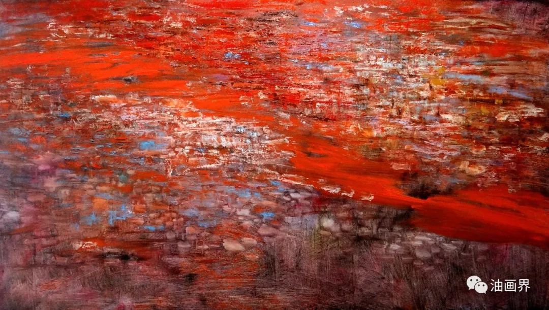 不难看出,罗晓平虽有深厚的写实功力而并不作茧自缚,他的作品多方面地吸收了西方现代派绘画的语汇,经常利用大色域和分解重构的方法来处理对象。不过这并不是重要的,重要的是,画家所使用的一切方法最终都汇聚为一个意义焦点,那便是对自然之美充满敬畏感的追踪。也许是经受不住这样的诱惑,罗晓平一次又一次地走向野外。为此,他还特地购置了一辆房车,以便让自己行在野外,睡在野外,与自然事物朝夕相处。在其得之于野外写生的画面中,我们甚至可接连见到探险者行路的轨迹——风暴、飞雪、瀑布,冰川、沼泽、巉岩、巨壑,以及极寒的天气、苍茫的原野、翻滚的云天和响动的经幡……他不仅这样常常于极境中探险,也把从险境中汲取的动能推及平凡的景物,令运动的节奏和变幻的色彩贯穿了他的大部分作品,即便是碧潭荷影、幽林曲涧,或静静的村寨、石砌的建筑和蜿蜒的道路,也由于分享了大自然咆哮的力量而充满视觉震撼。