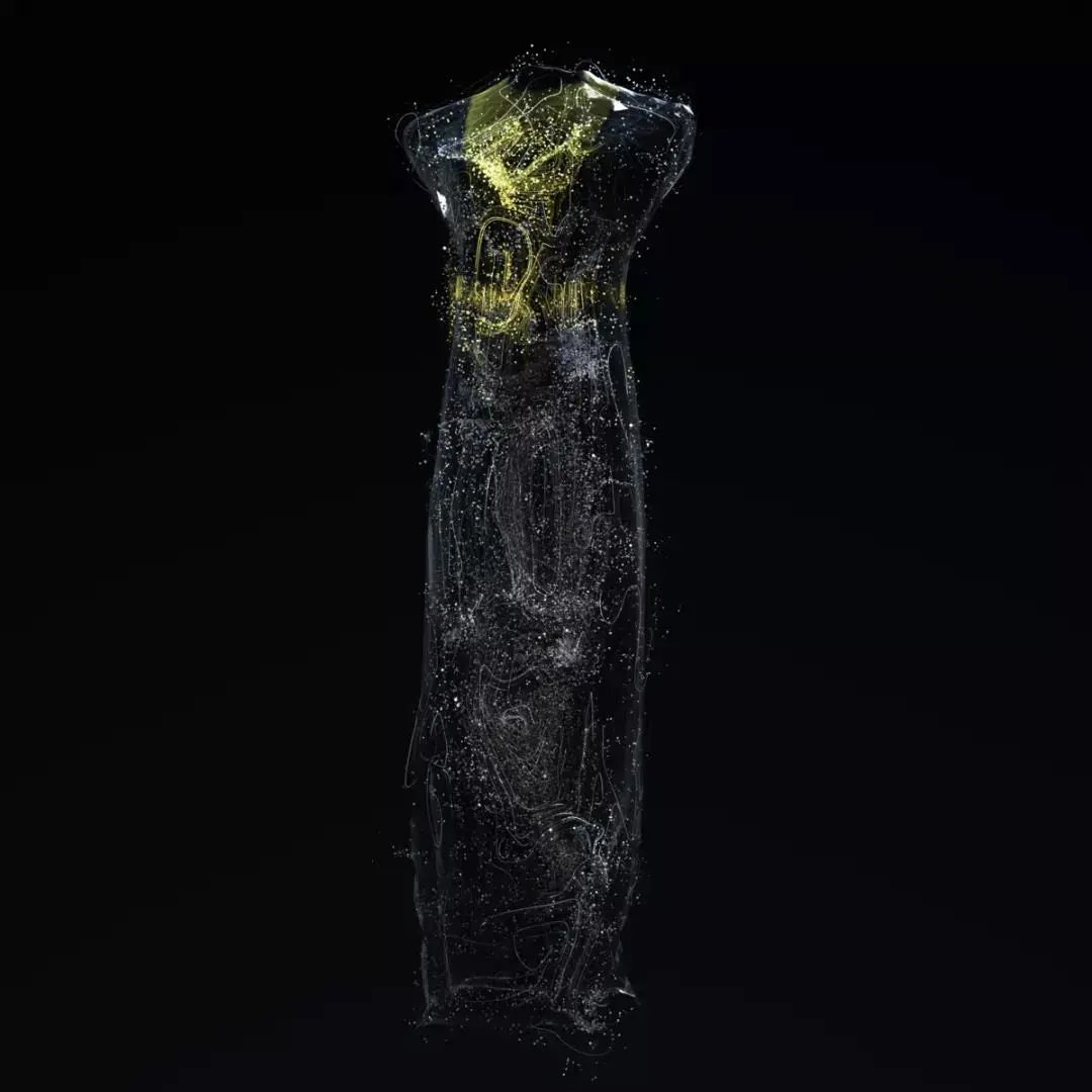 作为全球#可持续时尚设计师联盟成员之一,李芬芬带来藏品之一《AWAKE·黑脸琵鹭》,与世界一同发声,以创新力呼吁地球#环保 。作品以TU服装一贯的耐用性,将带有建筑般硬挺力度的线条与环保牛仔材质结合,以柔和的鹅黄、浅褐色搭配所呈现。当服装极具力量感的线条外形邂逅候鸟柔软的生命体,通过鸟叫声驱动粒子动态变化,隐喻濒危鸟类的求救信号,最终粒子由服装变幻成候鸟,传递人类与地球生物本是生命共同体的理念。