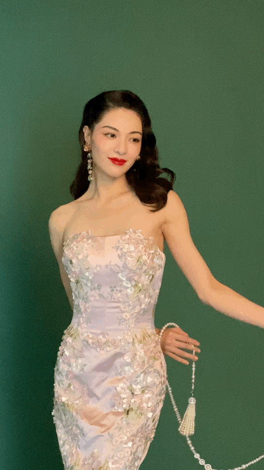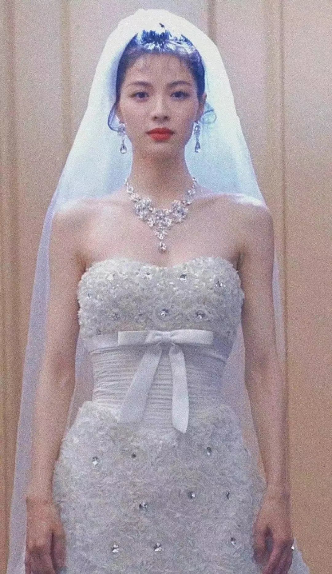 咱们先不说这个造型符不符合剧情和时代,单看江南征穿着这条来自Edward Couture的白裙,还真是很美的。水晶点缀立体白玫瑰,再加上褶皱收腰的设计,整个人都更加优雅了。