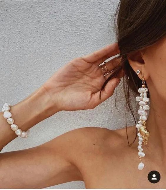 还有一种巴洛克珍珠,形状各异,不太规则,非常有天然的随性感。这种巴洛克珍珠的配饰在选择上就没有那么多闲置了,随便怎们搭配都好看。