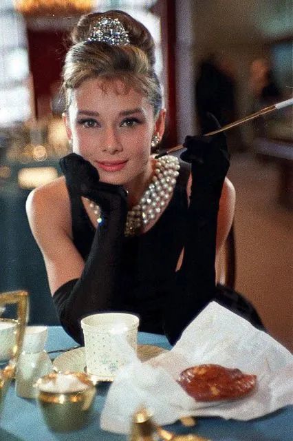 奥黛丽·赫本在《蒂芙尼的早餐》中这套超经典的造型也搭配了珍珠项链,黑色纪梵希礼服、歌剧手套、四串由垂饰连接的珍珠项链,都特别符合这个角色社交名媛的身份。